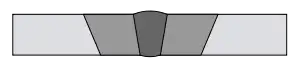 Стыковое сварное соединение. Сверху - без раздела кромок, снизу - с симметричной V-образной разделкой кромок под сварку.