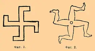 Сва́стика (символ «卐» или «卍», санскр. स्वस्तिक от स्वस्ति, свасти — приветствие, пожелание удачи[1], благоденствие[1][2], от सु, су — «добро, благо» и अस्ति, асти — «есть, быть»[3]) — крест с загнутыми под прямым углом концами («вращающийся»)[4] либо по часовой стрелке, либо против неё (в последнем случае некоторые авторы называют такой символ саувастика (Sauwastika) и даже приписывают ему иной смысл).