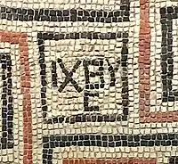 Свастика присутствует на мозаике, устилающей пол Базилики Рождества Христова в Вифлееме. Она изображена среди фрагментов древнейшего мозаичного пола, сохранившиеся от первоначальной базилики времён императора Константина Великого и его матери Елены (храм заложен в 320-х годах по указанию императора Константина). Внутри свастики находится квадрат, посередине которого видна надпись: греч. ΪΧΘΥΣ — «рыба», это слово использовалось в раннехристианской символике как аббревиатура: «Иисус Христос Божий Сын Спаситель»[78].