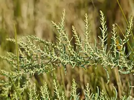 Однолетнее зелёное или пурпуровое растение, иногда у основания деревеснеющее, от самого основания ветвистое, часто с приподнимающимися ветвями до 30 см высоты. Листья толстоватые, полуцилиндрические, туповатые или острые.