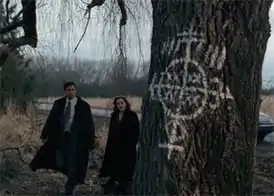 ![]() Агенты видят символ вуду на дереве, в которое врезался на машине рядовой Макалпин. | |||||