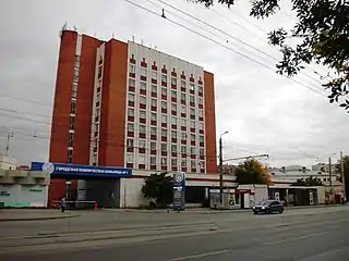 Перед пересечением с ул. Воровского. Один из корпусов ГКБ № 1