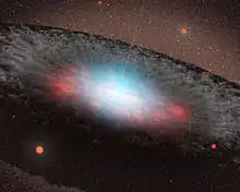 Сверхмасси́вная чёрная дыра́ — это чёрная дыра с массой 105—1011 масс Солнца. Сверхмассивные чёрные дыры обнаружены в центре многих галактик, включая Млечный Путь[2].