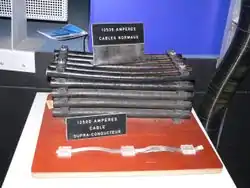 Отсутствие потерь на нагревание при прохождении постоянного тока через сверхпроводник делает привлекательным применение сверхпроводящих кабелей для доставки электричества, так как один тонкий подземный кабель способен передавать мощность, которая традиционным методом требует создания цепи линии электропередач с несколькими кабелями много большей толщины. Проблемами, препятствующими широкому использованию, является стоимость кабелей и их обслуживания — через сверхпроводящие линии необходимо постоянно прокачивать жидкий азот. Первая коммерческая сверхпроводящая линия электропередачи была запущена в эксплуатацию фирмой American Superconductor на Лонг-Айленде в Нью-Йорке в конце июня 2008 года[28]. Энергосистемы Южной Кореи собирались создать к 2015 году сверхпроводящие линии электропередачи общей длиной в 3000 км[29].