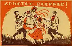 ![]() Дореволюционная пасхальная открытка | |