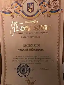 - Указ президента Украины от 30 березня 2021 года № 131/2021 «Про відзначення державними нагородами України з нагоди Міжнародного дня театру» (укр.)
