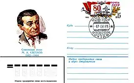 ![]() М. Светлов на художественном маркированном конверте СССР, 1983 год | |