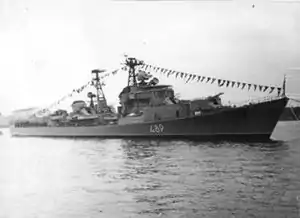 - В ходе службы эсминец сменил ряд следующих бортовых номеров[1]: