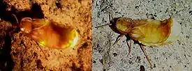 - Шестой тип является наиболее широко распространённым и наиболее сложно организованным. Встречается у большинства американских видов родов Photinus и Photuris[27][28], Luciola parvula[29], Luciola lusitanica[30] и многих других видов. Лантерны этого типа характеризуются большими размерами и расположением на вентральной стороне 6-го и 7-го стернитов брюшка у самцов и 6-го стернита у самок.