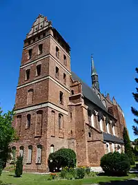 - Костёл Богоматери Ченстоховской и Святого Станислава (Старая Приходская Церковь) XV—XVII века — сочетает в себе целый ряд архитектурных стилей, от готики до барокко. Строительство началось около 1400 года и продолжалось в течение приблизительно 100 лет. Готический алтарь, центральная часть церкви несет в себе черты Возрождения, в то время как западная башня завершена необычными ренессансными аттиками. Внутреннее убранство, главным образом в стиле барокко, в настоящее время довольно скромное. Во время Второй мировой войны, при освобождении советской армией, церковь была сильно повреждена. Её реконструкция была начата только в 1983 году, завершена в 1988 году. В 1990 году создан приход. Церковь была использована во время съемок некоторых сцен сериала "Четыре танкиста и собака".