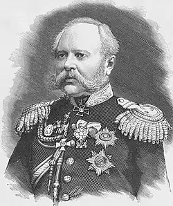 | Награды и премии | Орден Святой Анны 3-й ст. (1848), Орден Святой Анны 2-й ст. (1852), Орден Святого Владимира 4-й ст. (1856), Орден Святого Владимира 3-й ст. (1863), Орден Святого Станислава 1-й ст. (1865), Орден Святой Анны 1-й ст. (1867), Орден Святого Владимира 2-й ст. (1873), Орден Белого орла (1876), Орден Святого Георгия 4-й ст. (1877) |