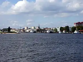 Свиноу́йсьце (польск. Świnoujście), до 1945 года Свинемю́нде (нем. Swinemünde) (что в переводе означает «Устье Свины»[4]) — город в Западно-Поморском воеводстве Польши, морской порт, курорт[5]. Город расположен на островах Узедом и Волин, между которыми находится река Свина, соединяющая Щецинский залив с Балтийским морем, а также Карсибур.