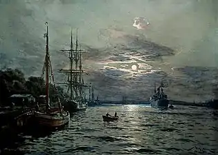 Вилли Стёвер: Гавань Свинемюнде при лунном свете (1922)