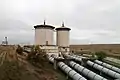 - два уравнительных резервуара башенного типа, один высотой 16 м и диаметром 10 м, второй высотой 20 м и диаметром 12 м. В каждой башне установлены по два дисковых затвора, перекрывающих подачу воды в турбинные водоводы;