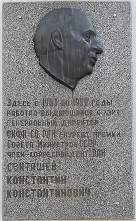 Мемориальная доска Свиташеву установлена на здании Института физики полупроводников им. А. В. Ржанова СО РАН