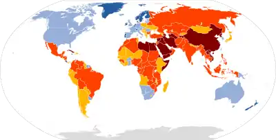 Согласно рейтингу неправительственной некоммерческой организации Freedom House среди 199 представленных стран Казахстан находится на 179 позиции, на 199 месте расположилась КНДР (Северная Корея)[2].