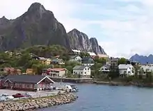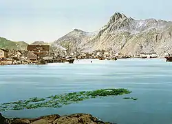 | Свольвер, июнь 2005 года | Свольвер около 1890 года | Гавань Свольвера («From Svolvær harbor») — картина Гуннара Берга, который родился в Свольвере |
