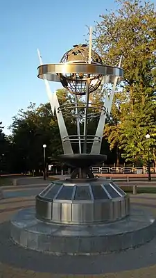 В центре скульптурной композиции находится земной шар. Он расположен на постаменте со стрелами. Автором скульптуры продуманы элементы, которые отвечают за отображение электросвязи, почтовой и спутников связи. Так, стрелы символизируют электросвязь, голубь с конвертом в клюве — почтовую связь, спутниковая связь отождествляется с орбитой, которая расположена вокруг Земли[1]. Высота скульптуры составляет около 6 метров[2]. У основания создатели разместили таблички, на которых указаны имена меценатов проекта и названия операторов связи. Возле скульптуры есть Wi-Fi[2], установлена камера, у которой налажена связь с системой «Безопасный город»[1].