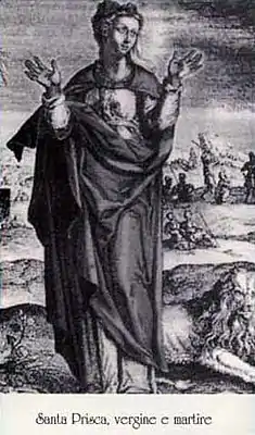 По преданию, тринадцатилетняя девушка уверовала во Христа. Согласно «Житию Святых», Приска была обезглавлена и погребена при императоре Клавдии (41-54 года), позднее её мощи были перенесены на холм Авентин.