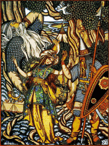 ![]() И. Билибин. Илья Муромец и Святогор. 1900-е гг. | |