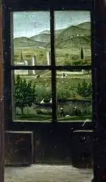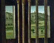 Интересно, что пейзаж за спиной у Иеронима явно разделён на две несходные между собой части. Слева в окне виднеется город, населённый людьми, которые прогуливаются, катаются на лодке, ездят верхом. Справа же пейзаж пустынен: в нём нет ни людей, ни даже созданных ими строений. Вероятно, это очередная аллюзия на письмо Иеронима Евстохии, в котором он связывает городскую жизнь с соблазном и искушениями, тогда как уединённая и аскетическая жизнь отшельника в пустыне сулит спасение[23]. Примечательно также, что в окнах, нарисованных в верхней части картины, Антонелло изобразил птиц — но только в центральной и правой части: в окне слева их нет. Птицы могут символизировать чистые души, отринувшие соблазн и стремящиеся обрести Рай: сходный образ, опять же, присутствует в письме к Евстохии[19].