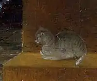 Вероятно, сходную (и, возможно, также двойственную) символику имеет и изображённая слева кошка. Ввиду её способности ловить мышей она иногда связывалась с дьяволом, уловляющим души[20]. Кроме того, кошка, как и куропатка, считалась исключительно похотливым существом, всячески завлекающим самцов. Поэтому на картине она может выступать как аллегория плотских искушений, от которых Иероним предостерегал Евстохию. С другой стороны, кошка — естественный компаньон учёного-книжника, оберегающий его фолианты от порчи мышами[21].