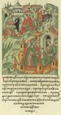 ![]() Мстислав Старый отзывает Святослава с новгородского княжения, посылая вместо него Всеволода Мстиславича | |