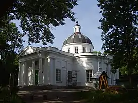 Начало строительства кирпичной церкви — 1774 год. Храм строился на средства графа Бобринского, рядом с их дворцом, в течение девяти лет по проекту И. Е. Старова, тогда ещё молодого выпускника Российской академии художеств, впоследствии известного русского архитектора, прославленного, прежде всего, созданием Таврического дворца и Троицкого собора Александро-Невской лавры в Санкт-Петербурге.