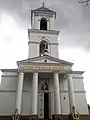 Каменный храм построен в стиле классицизма. Крестовый план образован квадратными в плане боковыми ветвями (южной и северной), удлиненных пропорций западным объёмом и укороченной прямоугольной в плане апсидой на востоке. Над средокрестием помещен массивный по пропорциям купол на световом восьмиграннике, с западной стороны — трехъярусная колокольня. Западный и восточный фасады акцентированы портиками со спаренными колоннами тосканского ордера, завершенными треугольными фронтонами.