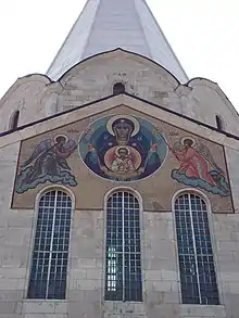 В некоторых, в том числе официальных[7], источниках считается, что эскизы мозаики выполнены Николаем Рерихом, однако существуют исторические доказательства того, что эскизы выполнены реставратором Григорием Чириковым[2].