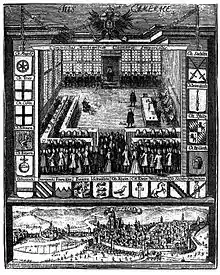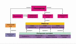В 1495 году правитель Австрии Максимилиан I созвал в Вормсе всеобщий рейхстаг Священной Римской империи, на утверждение которого он представил проект реформы государственного управления империи. В результате обсуждения была принята так называемая «Имперская реформа». Германия была разделена на шесть имперских округов (в 1512 году к ним были добавлены ещё четыре)[54][55]. Органом управления округа стало окружное собрание, в котором имели право участвовать все государственные образования на территории округа: светские и духовные княжества, имперские рыцари и вольные города. Каждое государственное образование имело один голос (в некоторых округах это обеспечивало преобладание имперских рыцарей, мелких княжеств и городов, которые составляли главную опору императора). Округа решали вопросы военного строительства, организации обороны, набора армии, а также распределения и взимания имперских налогов. Рейхстагу, органу, представлявшему сословия, передавалась законодательная функция. Состав рейхстага не зависел от воли императора, результаты обсуждения вопросов в рейхстаге передавались последнему с тем, чтобы он обеспечивал исполнение решений[56]. Огромное значение имело также создание Высшего имперского суда — верховного органа судебной власти Германии, ставшего одним из главных инструментов влияния императора на территориальных князей и механизмом проведения единой политики во всех государственных образованиях империи[57].