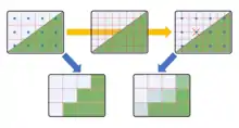 - Специализированные алгоритмы сглаживания, работающие на изображениях определённого типа (например, Алгоритм Ву для отрисовки отрезков).