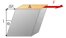 где Δx — абсолютный сдвиг параллельных слоёв тела относительно друг друга; l — расстояние между слоями (для малых углов )