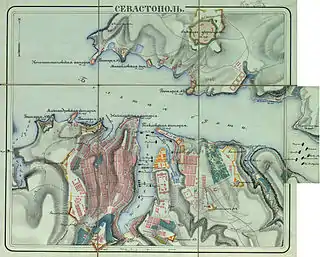 Севасто́поль (укр. Севастополь, с 1783 по 1784 и с 1797 по 1826[15] годы — Ахтиар) — город на юго-западе Крымского полуострова, на побережье Чёрного моря[16]. Незамерзающий морской торговый и рыбный порт, промышленный, научно-технический, рекреационный и культурно-исторический центр. Носит звание «Город-Герой»[К 2]. В Севастополе расположена главная военно-морская база Черноморского флота Российской Федерации. До 2014 года в городе также располагалась главная военно-морская база Военно-морских сил Украины. Город Севастополь входит в перечень исторических поселений федерального значения России[17] и в список исторических населённых мест Украины[18].