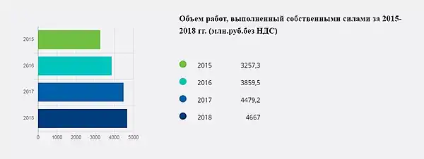 - Объём работ, выполненный собственными силами за 2015 - 2018 гг.