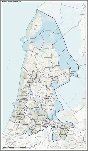 Крупные города Северной Голландии: Амстердам, Харлем, Хилверсюм, Ден Хелдер, Алкмар, Зандам (Zaandam) и Хоорн. Остров Тексел также входит в состав Северной Голландии. Кроме того, Северная Голландия также пригласила острова Бонайре, Саба и Синт-Эстатиус (Нидерландские Антильские острова) войти в её состав, но пока никаких решений не принято.