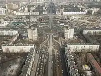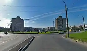 Вдоль Гражданского проспекта, вблизи с площадью, стоят два жилых дома «трилистника». Они были построены во второй половине 70-х годов XX века по проекту архитектора Попова В. В. В северо-западной части площади расположены бензоколонка и троллейбусное кольцо. В северо-восточной части расположена ещё одна бензоколонка.
