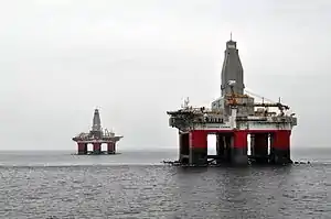 ![]() Буровые платформы — «Северное сияние» на переднем плане, «Полярная звезда» — на заднем |