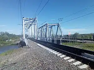 - железнодорожный мост через реку Казанка (Мост Горбатый) (перегон о.п. «797 км» — ст. «Дербышки»)[11]