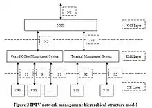 Например для EMS, нижний уровень это NE (сетевой элемент) и верхний это NMS. Аналогично для NMS, нижний уровень это EMS и верхний это OSS. Согласно модели уровней TMN[1], иерархия уровней управления сетью снизу вверх выглядит так: