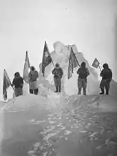 Другой попыткой достижения Северного полюса стала Британская арктическая экспедиция 1875—1876 годов, под руководством Джорджа Нэрса, которая двигалась к полюсу со стороны пролива Смита на кораблях «Алерт» и «Дискавери». Часть экспедиции, на санях, в которые были впряжены люди, под руководством Альберта Маркема (англ. Albert Markham) 12 мая 1876 года достигла рекордных 83°20’26" с. ш., прежде чем повернуть назад[9][10].