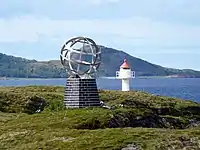 Знак на острове Викинген, отмечающий полярный круг в Норвегии