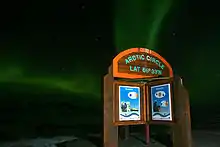 ![]() Знак вдоль шоссе Дальтон отмечающий положение Северного Полярного круга на Аляске ![]() Полярное сияние над знаком Северного Полярного круга вдоль трассы Демпстер на территории Юкон на 66°33′55″ с. ш. 136°18′26″ з. д. |