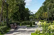 Парк состоит преимущественно из зелёного массива, рекреационную инфраструктуру составляют прогулочные дорожки и скамейки.
