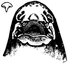Капюшон на голове от рыла до жабр отсутствует. Вентральная поверхность головы ровного светлого цвета без отметин. Рыло до глаз покрыто мелкими тёмными пятнами. Чёрные «эполеты» над грудными плавниками крупные, в виде окантованных белым цветом «глазков», заднюю половину основной отметины окружают две вытянутые и изогнутые отметины. На плавниках и на теле нет белых пятен. Тело покрыто крупными и мелкими отметинами, образующими сложный сетчатый узор на светлом фоне. Грудные плавники имеют тонкую тусклую окантовку и покрыты тёмными пятнышками. Седловидными отметинами перекрещиваются на вентральной поверхности тела.