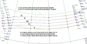 Треки получают буквенные обозначения, причем треки в западном направлении (дневные) обозначаются с начала алфавита (с буквы A) в направлении с севера на юг по точке начала трека. Треки в восточном направлении (ночные) обозначаются с конца алфавита (с Z) в направлении с юга на север[1].