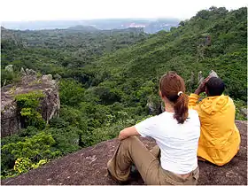 Северо-Гвинейская возвышенность состоит из гор и плоскогорий, которые являются выступами Африканской платформы. Высоты в восточной части составляют 300—500 м, на западе, в массиве Фута-Джаллон и Леоно-Либерийской возвышенности, — до 500—1000 м и более. Высшая точка — гора Бинтимани (1948 м). На засушливых северных склонах преобладают листопадные саванные леса и высокотравные саванны. Южные наветренные склоны возвышенности более крутые; они сильно расчленены многочисленными реками и покрыты главным образом влажными вечнозелёными и листопадно-вечнозелёными лесами.