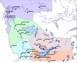 Северо-За́падные террито́рии (англ. Northwest Territories [ˌnɔrθˌwɛstˈtɛrɨtɔəriːz], фр. Territoires du Nord-Ouest, инуктитут ᓄᓇᑦᓯᐊᖅ/nunatsiaq) — административная единица (территория) в Канаде, расположенная в северной части страны, в приполярном регионе. Столица (c 1967) — Йеллоунайф. Площадь — 1 346 106 км² (3-е место, 15,2 % водной поверхности). Население — 42 940 человек (11-е место, данные 2009 года).
