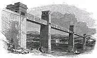 - Мост Британия, построенный в 1850 г. Робертом Стефенсоном через пролив Менай.