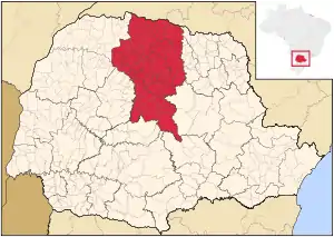 Северо-центральная часть штата Парана на карте.